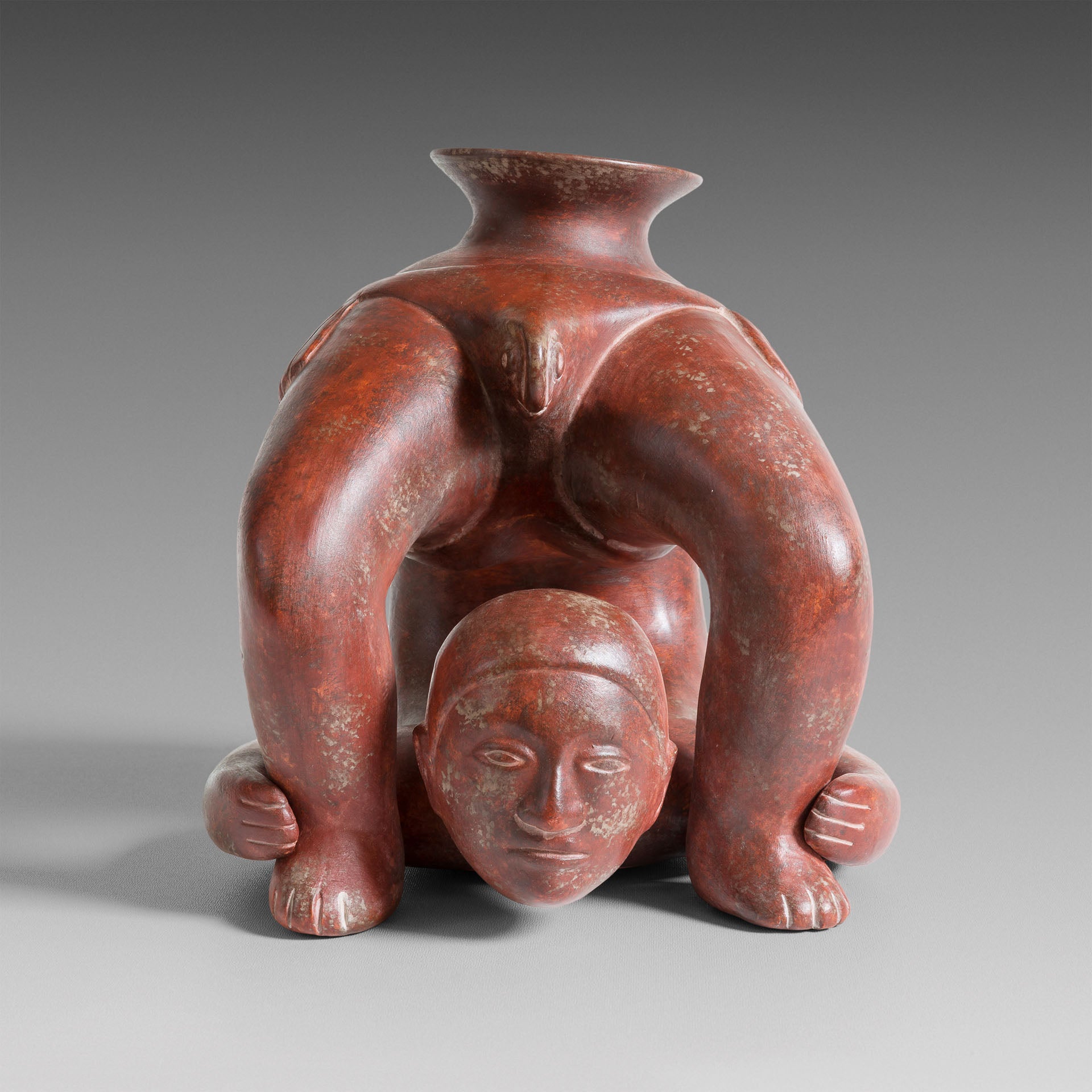 Les artistes Colima ont produit des céramiques montrant des contorsionnistes nus ou habillés pratiquant des exercices de « souplesse renversé » et portant habituellement une coiffe ou une coiffure. La signification en est inconnue, mais on pense qu’il pourrait s’agir de danses exécutées lors de cérémonies religieuses ou de figures pratiquées au jeu de balles traditionnel.