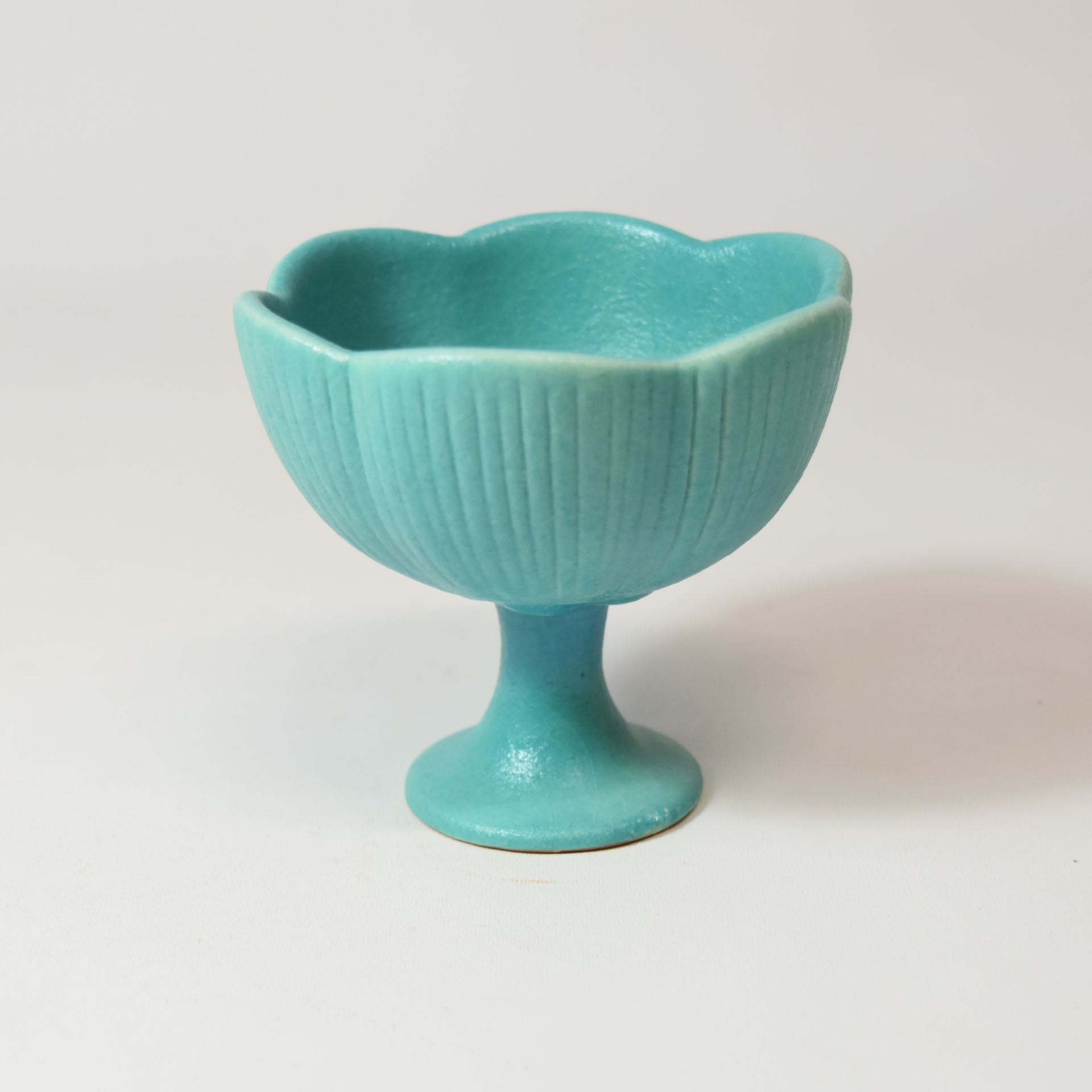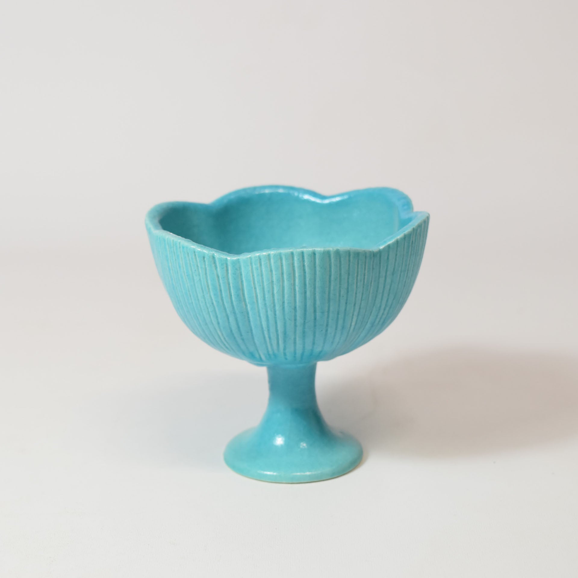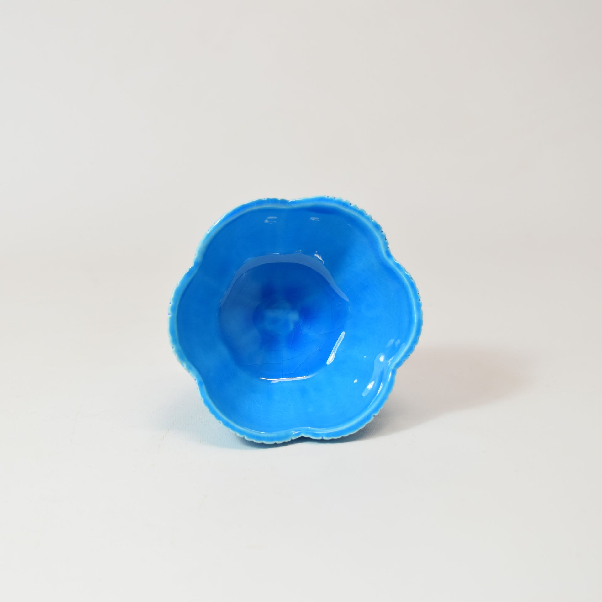 Notre reproduction reprend les codes des faïence égyptienne, émaillée de couleur bleu-vert et ayant la forme d'une fleur de lotus.