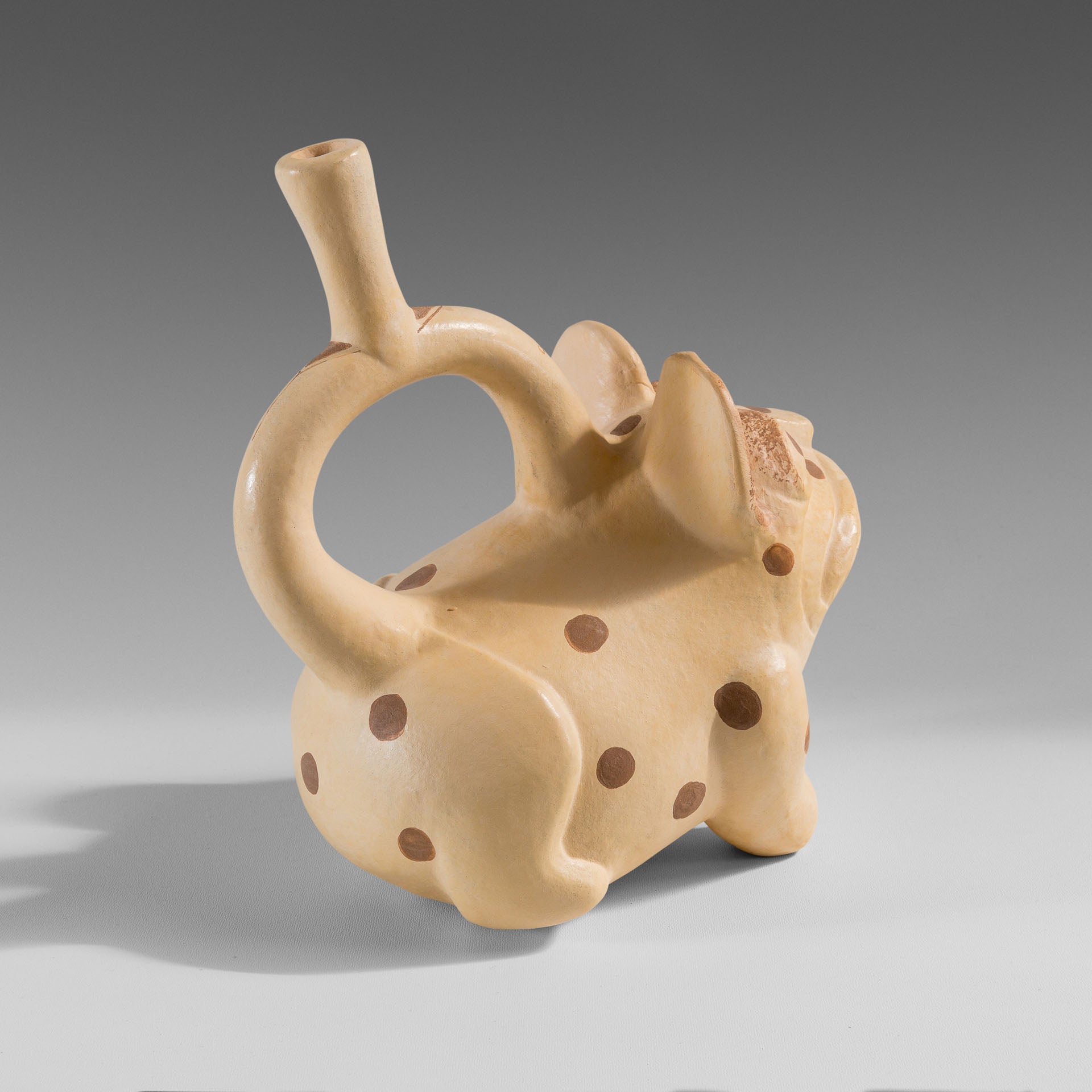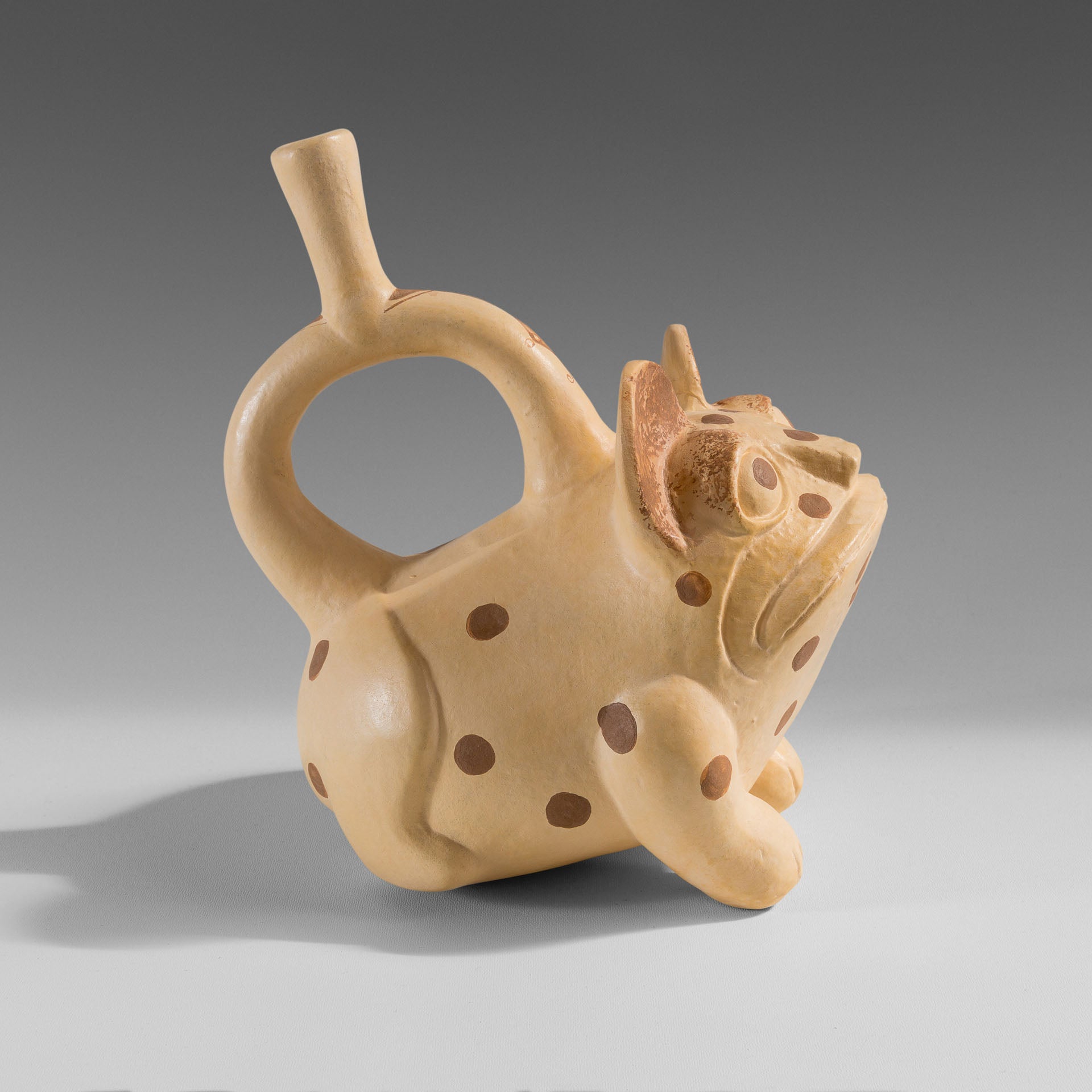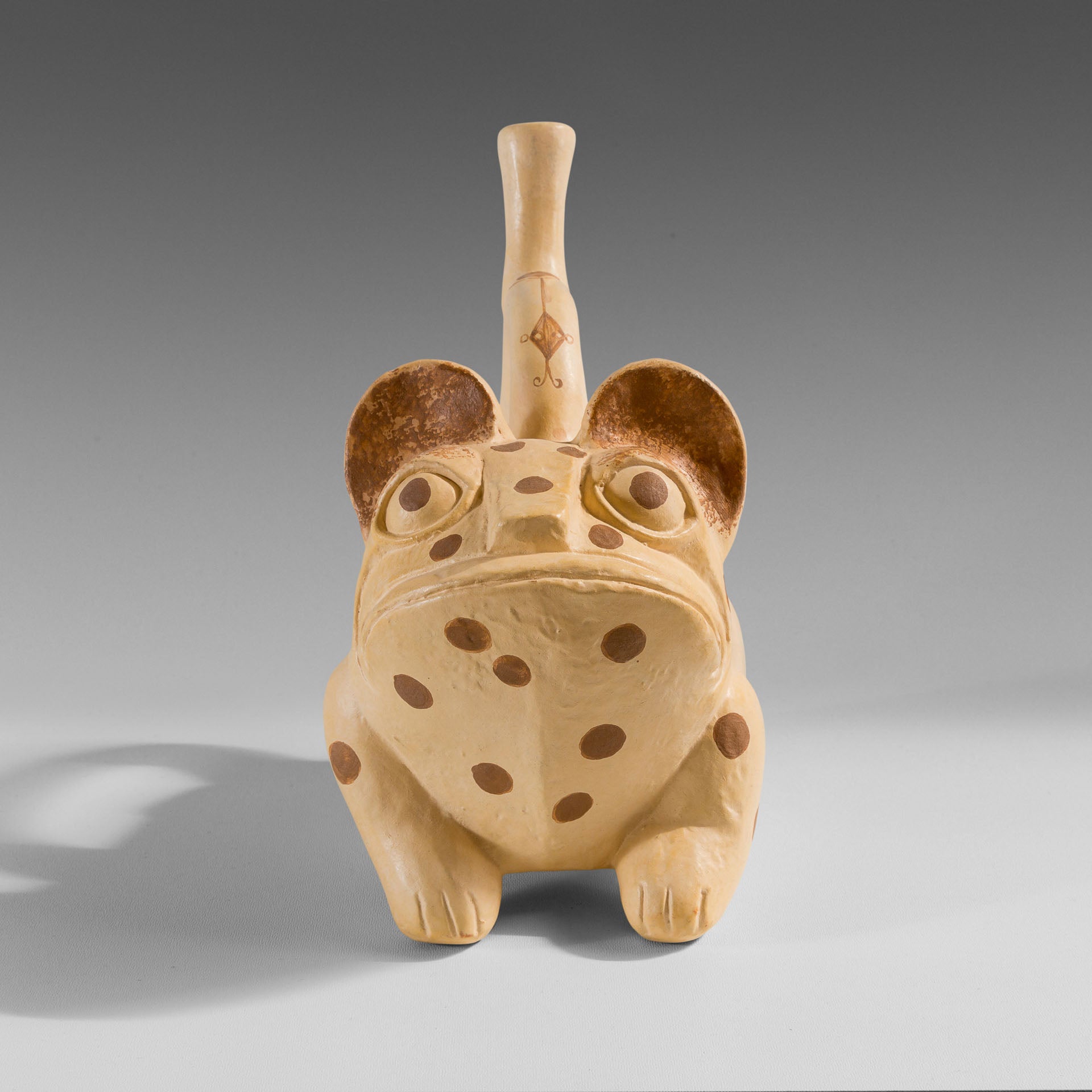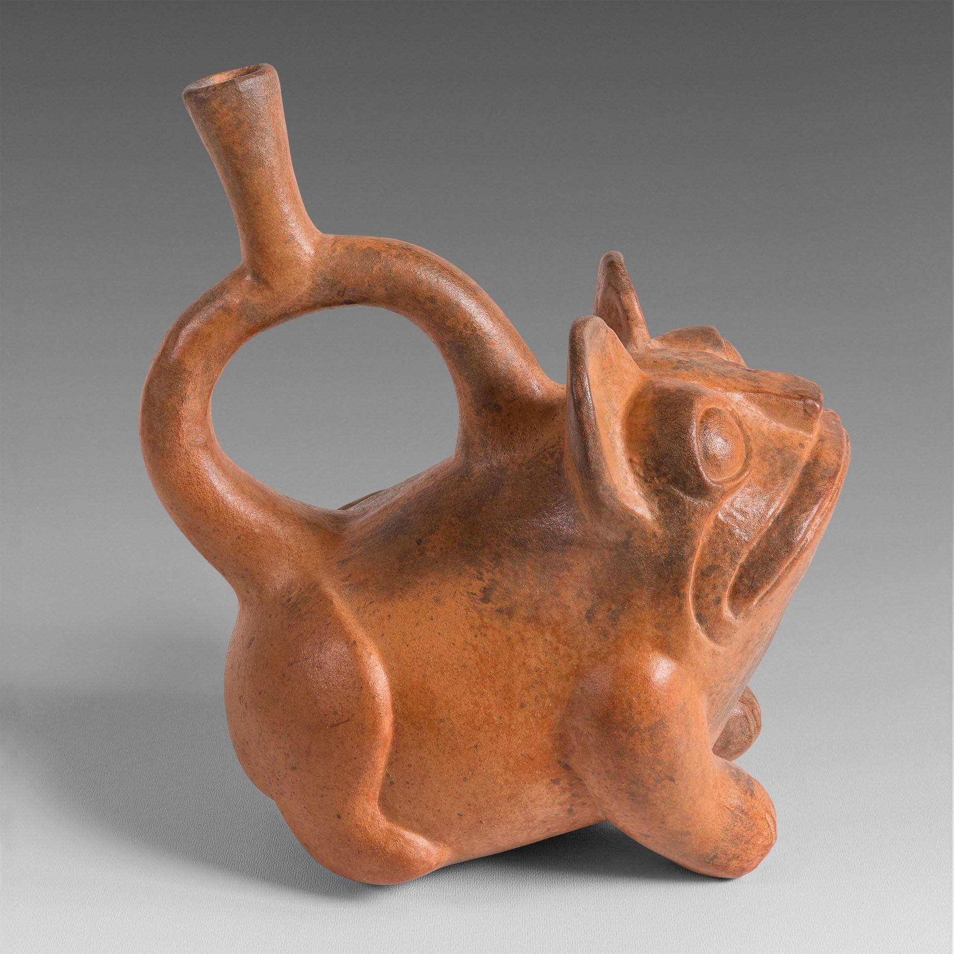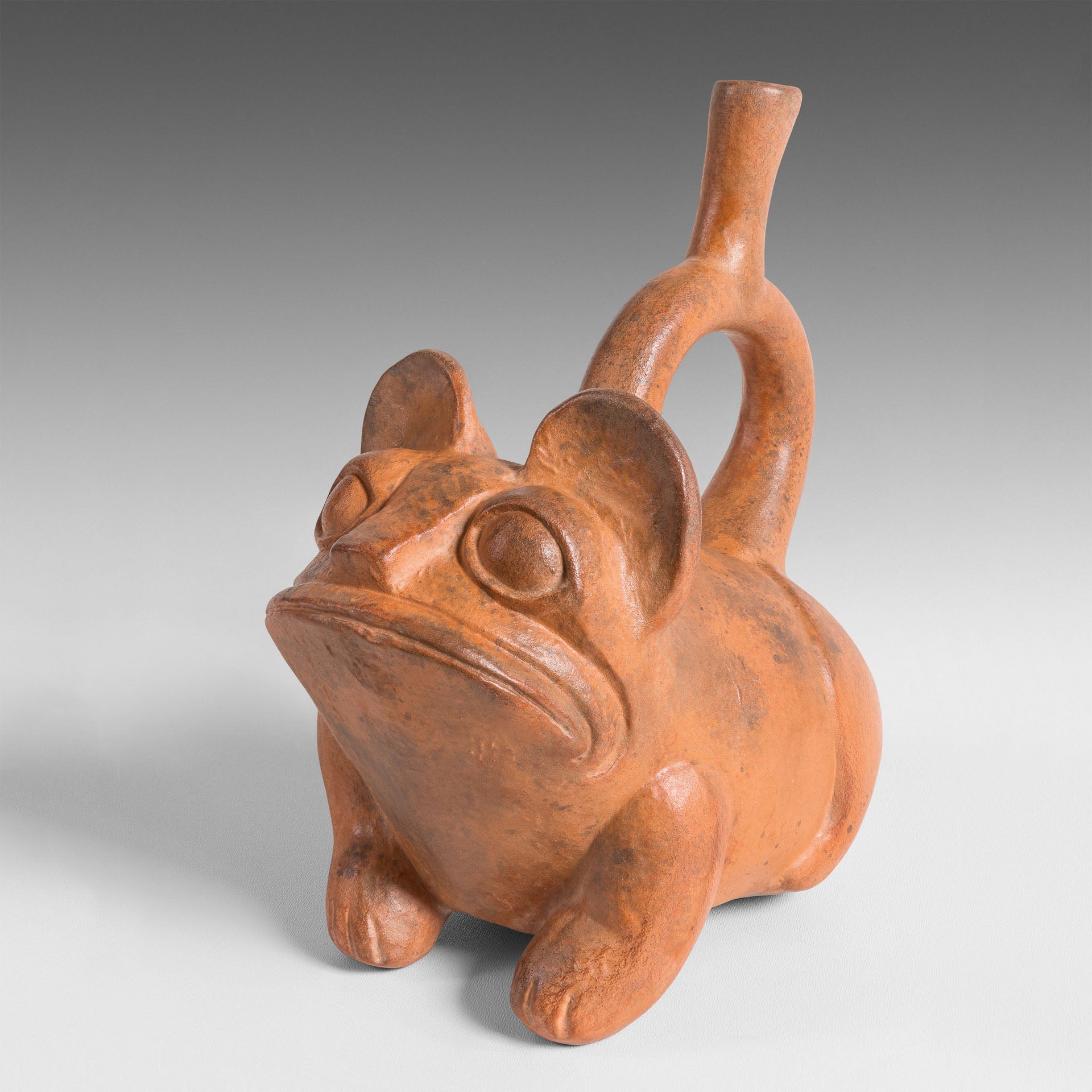 Vase étrier représentant un crapaud aux belles formes stylisées et naturalistes. Cet animal précurseur de la pluie est associé à des rites de fertilité et de fécondité.
