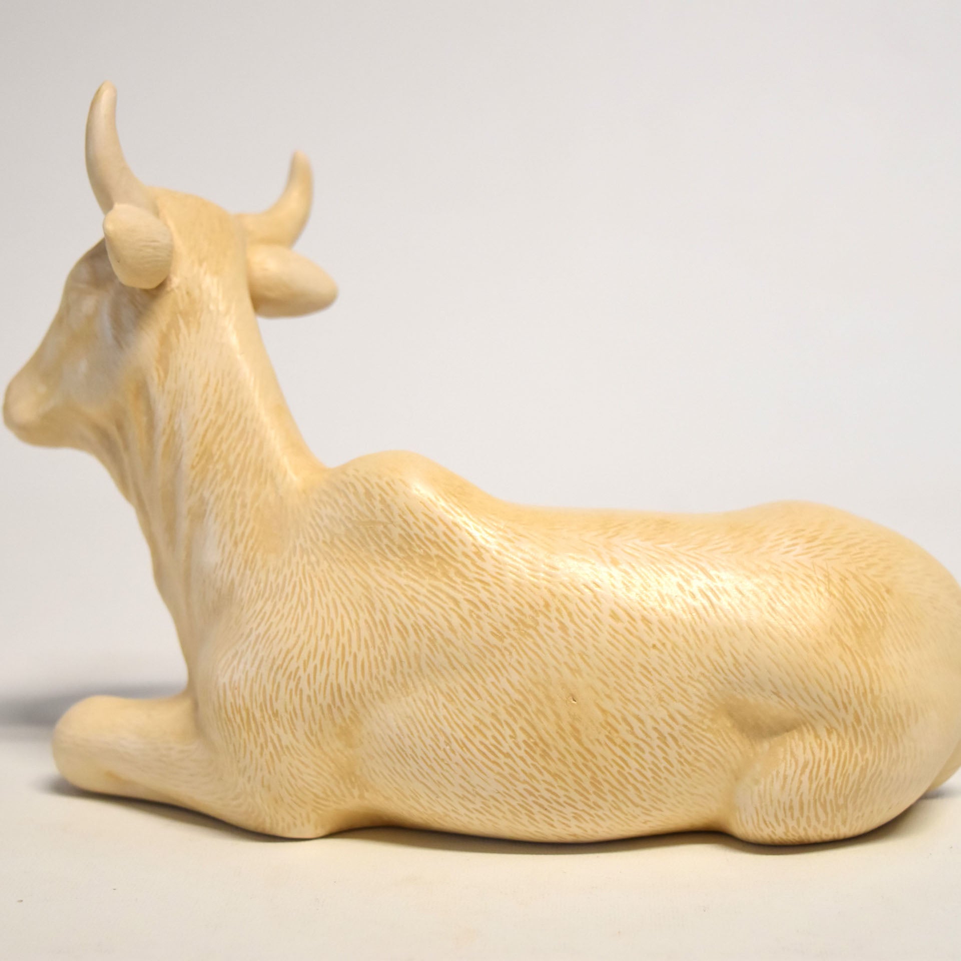 Reproduction en terre cuite d'un personnage de crèche : le boeuf