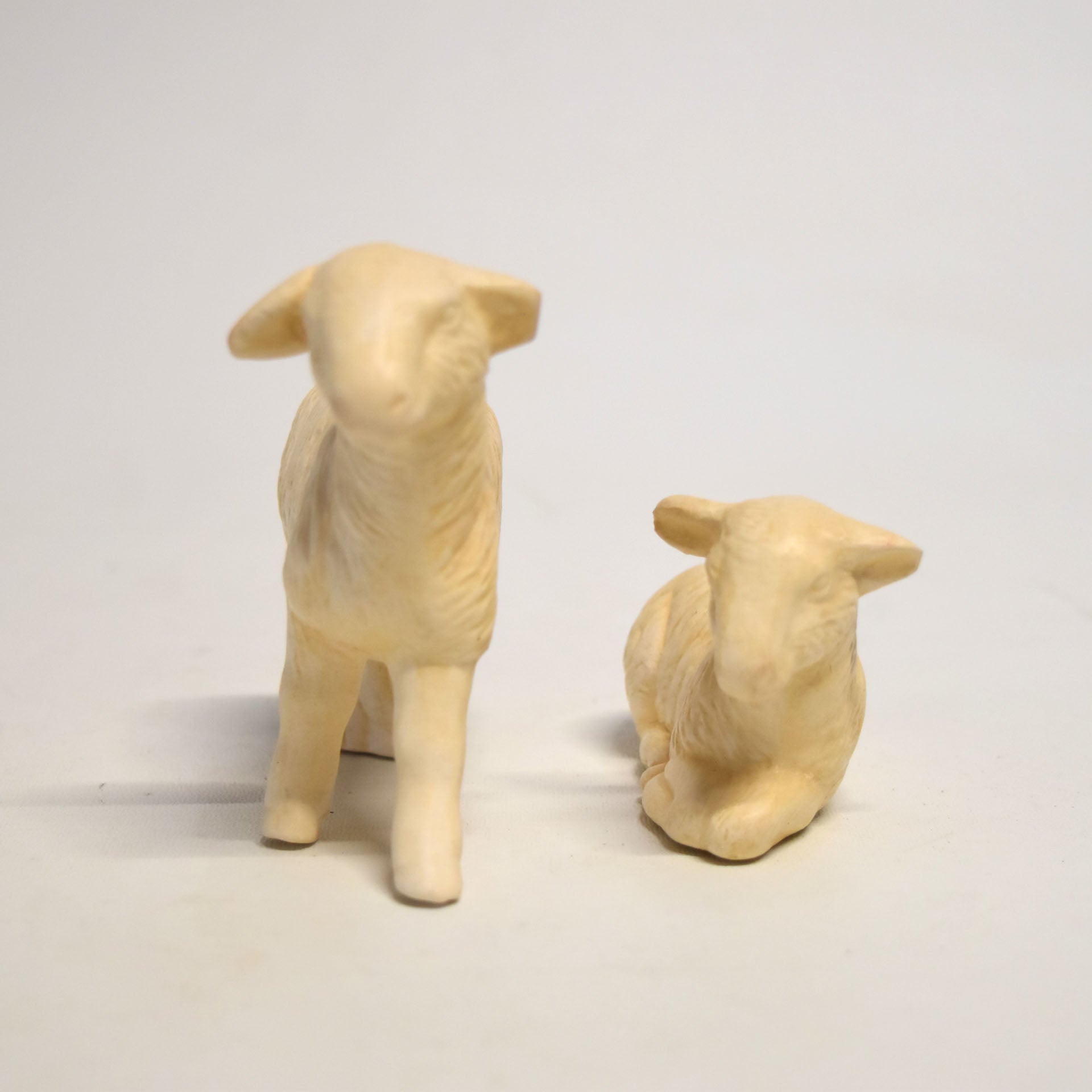 Reproduction en terre cuite d'un personnage de crèche : les agneaux