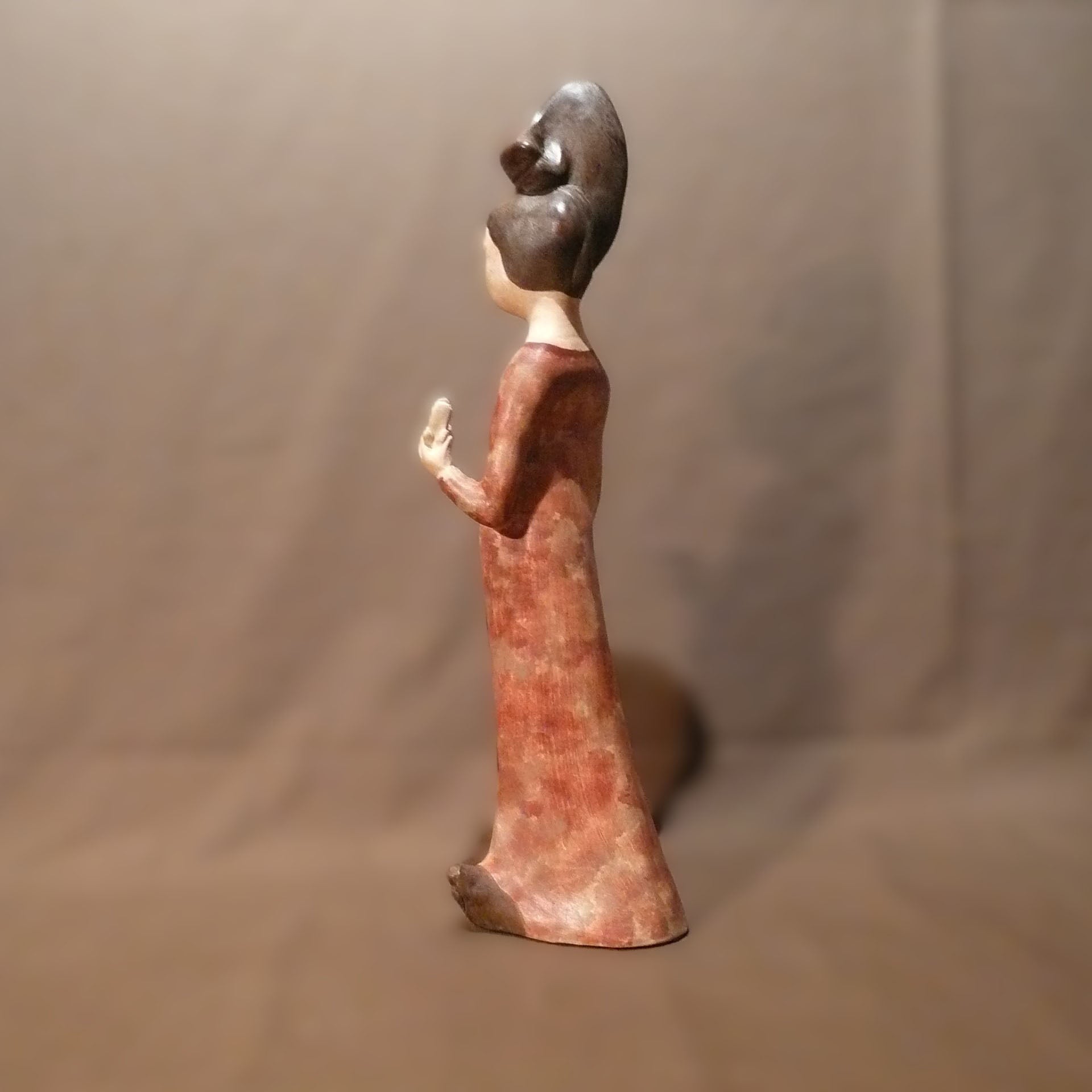 Contrairement au plâtre ou à la résine, la terre cuite est plus lourde, plus fragile, plus difficile à travailler mais la finesse de la matière, le toucher, les possibilités de finition tout est réuni pour réaliser des pièces exceptionnelles qui ont une âme.