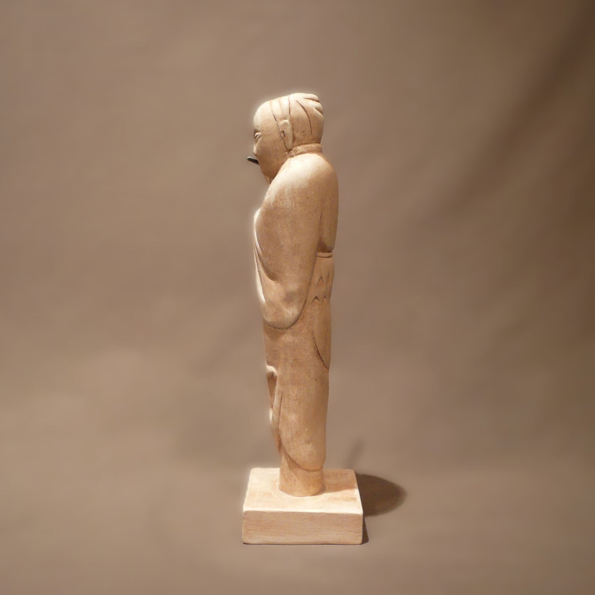 La taille et le nombre de personnages augmentèrent avec le temps, et plusieurs édits impériaux essayèrent de limiter cette inflation. Cette statuette ne fût pas une « mingqi », un objet funéraire, puisque l’ensevelissement avec des objets n’ayant plus cours sous les Ming, mais elle a hérité de l’art millénaire des artisans chinois.