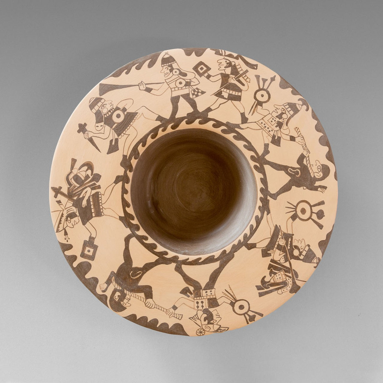 Notez que les pièces décorées à l'engobe sont cirées et patinées pour leur donner un aspect historique plus ou moins brillant.