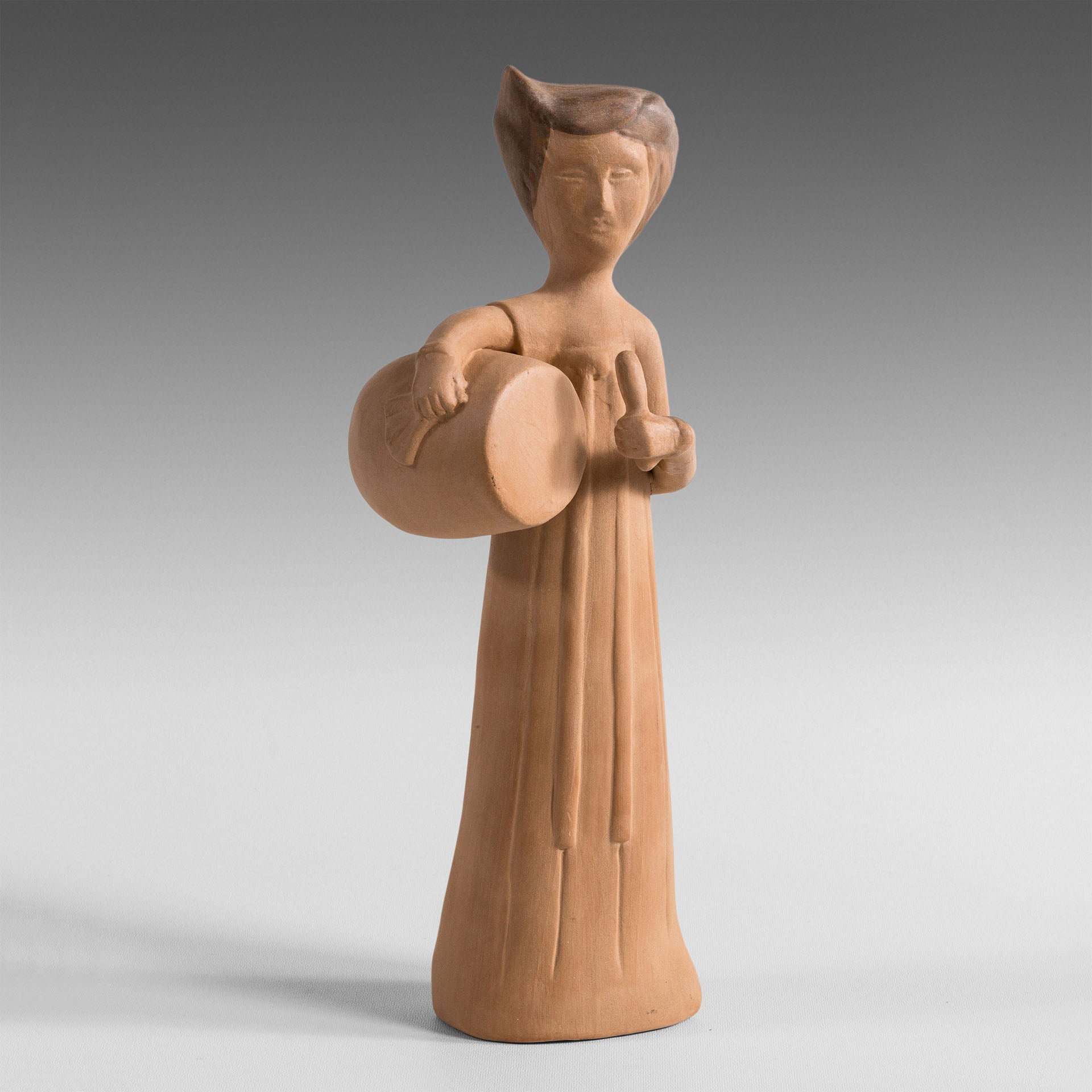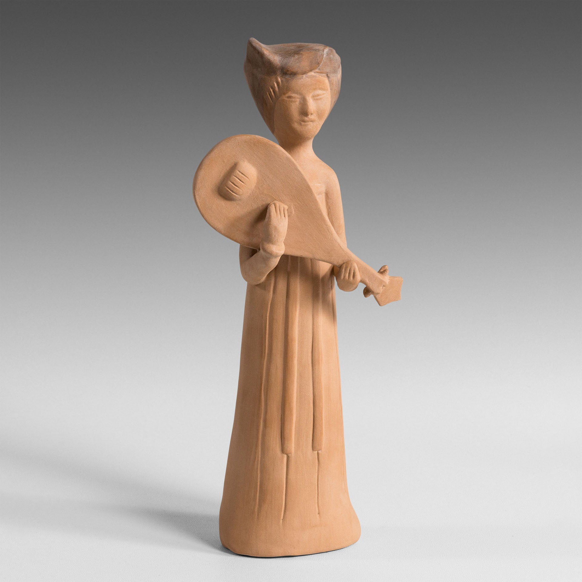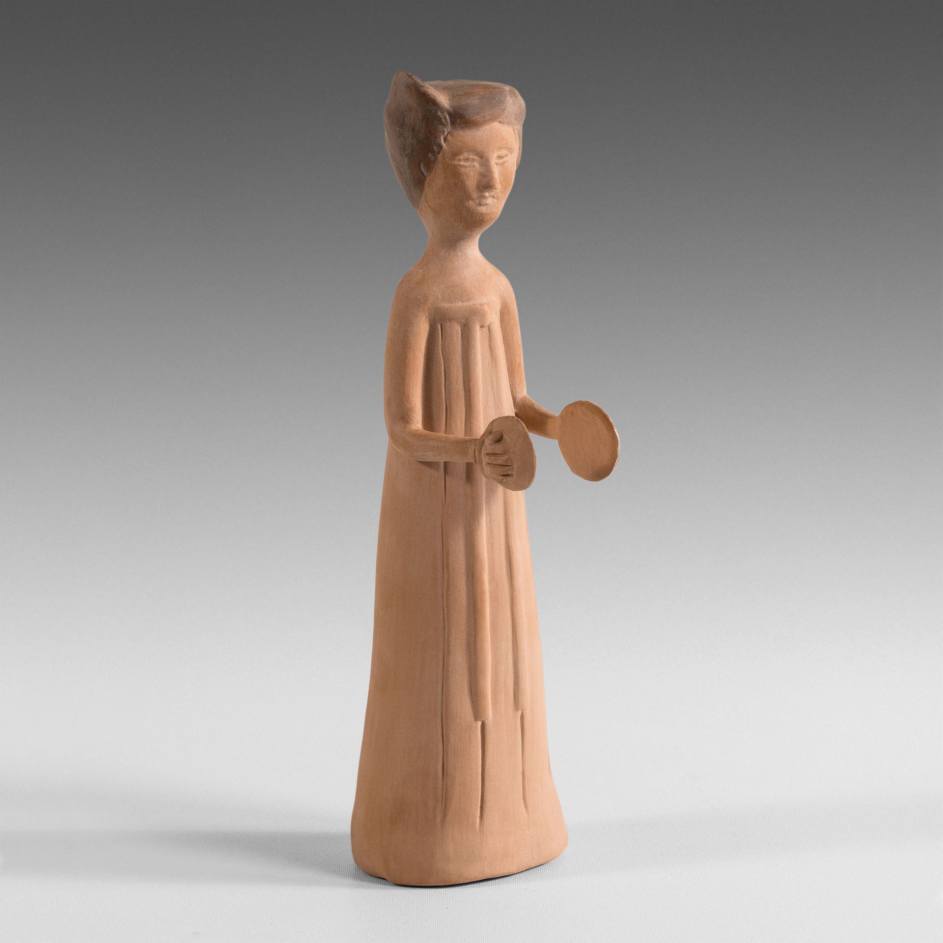Les statuettes de musiciennes ont été produites en grande quantité très tôt dans l’histoire de la Chine. La tradition voulait que l’empereur et les nobles se fassent inhumer avec un ensemble de statuettes, appelés des « Yong » représentant leur cour, pour pouvoir les servir et les divertir après la mort. Le premier exemple et le plus impressionnant est l’armée de terre cuite de l’empereur « Quin », mais l’apogée de celle-ci se situe à l’époque des Tang.