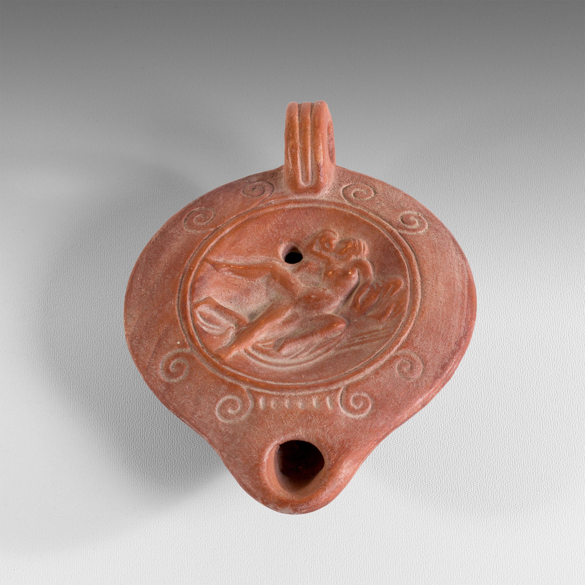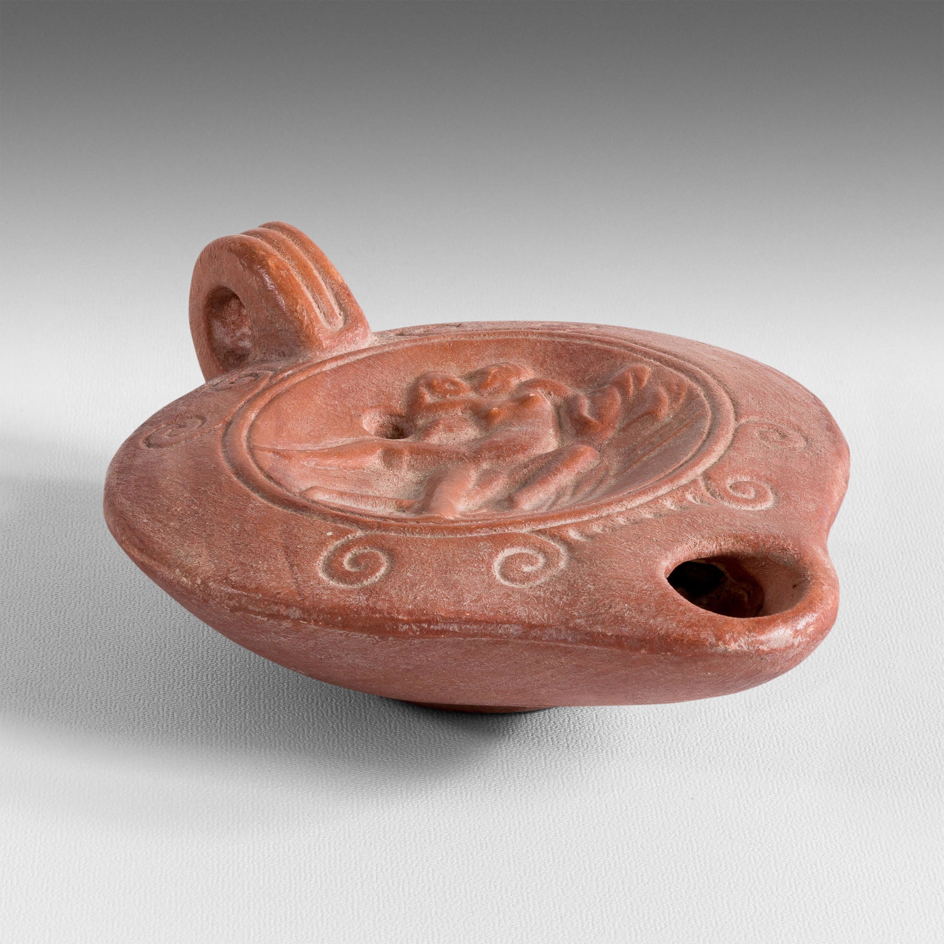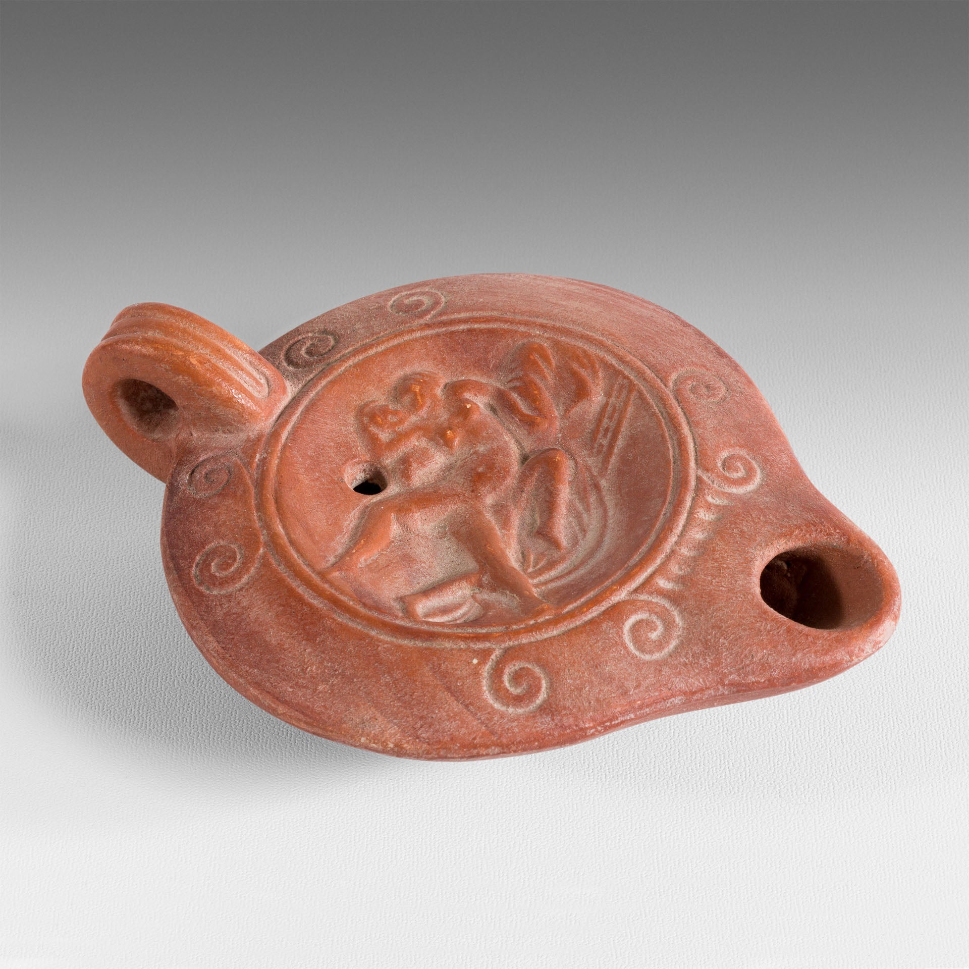 Reproduction en terre cuite d'une Lampe à huile couple enlacé
