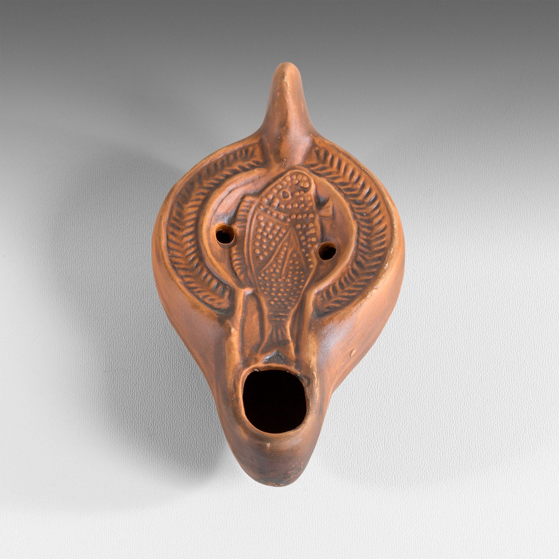 Reproduction en terre cuite d'une Lampe à huile poisson