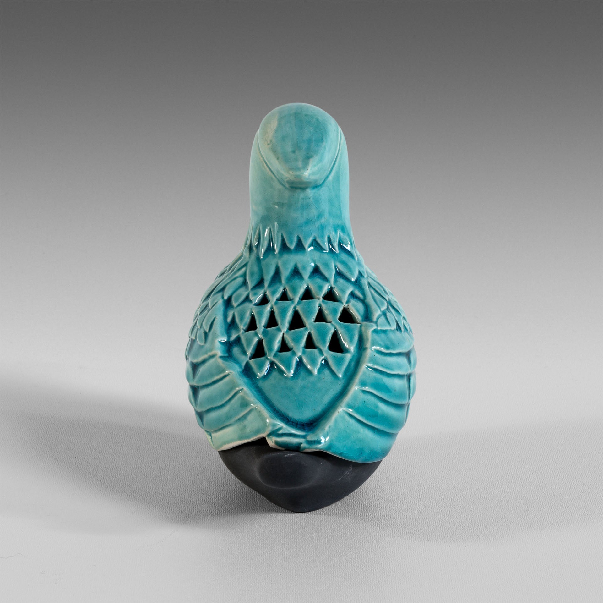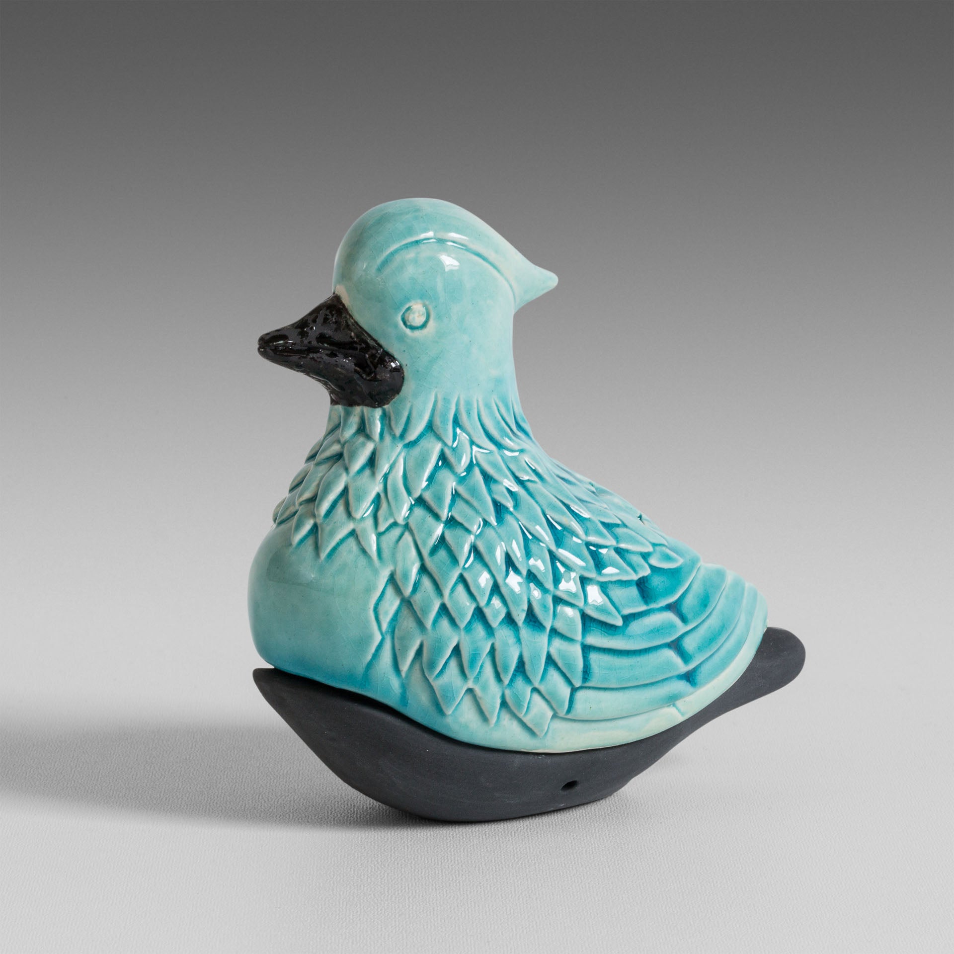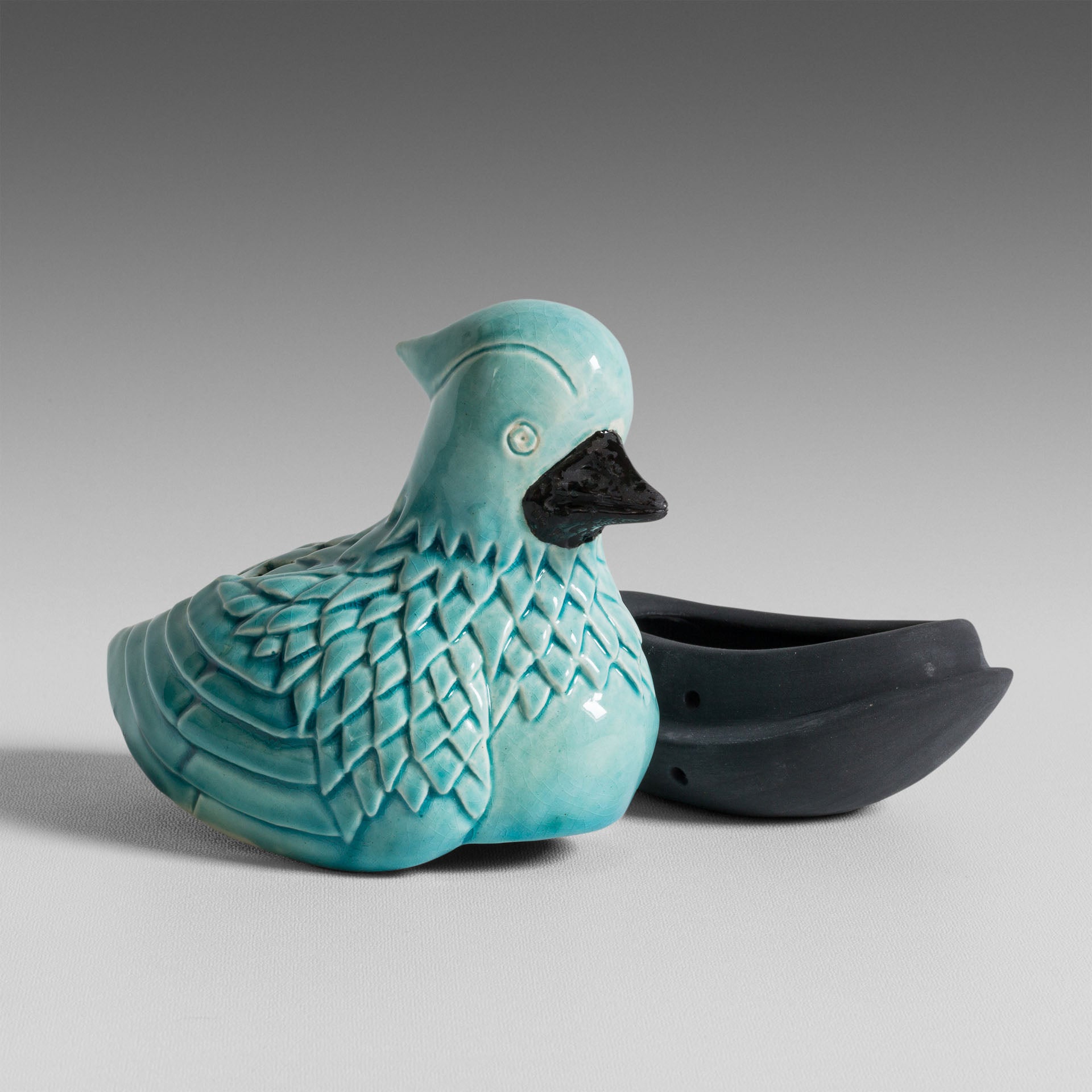 Ce canard mandarin fait partie des animaux qui ont été beaucoup fabriqués pour leur symbolisme. Il était celui du bonheur et de l’amour. Le fait d’avoir un couple de mandarin chez soi apportait la félicité conjugale. L’encens jouait un rôle important dans les traditions chinoises pour les offrandes et pour la purification. La fumée de l’encens passant à travers les trous du dos de l’oiseau devait renforcer la symbolique.
