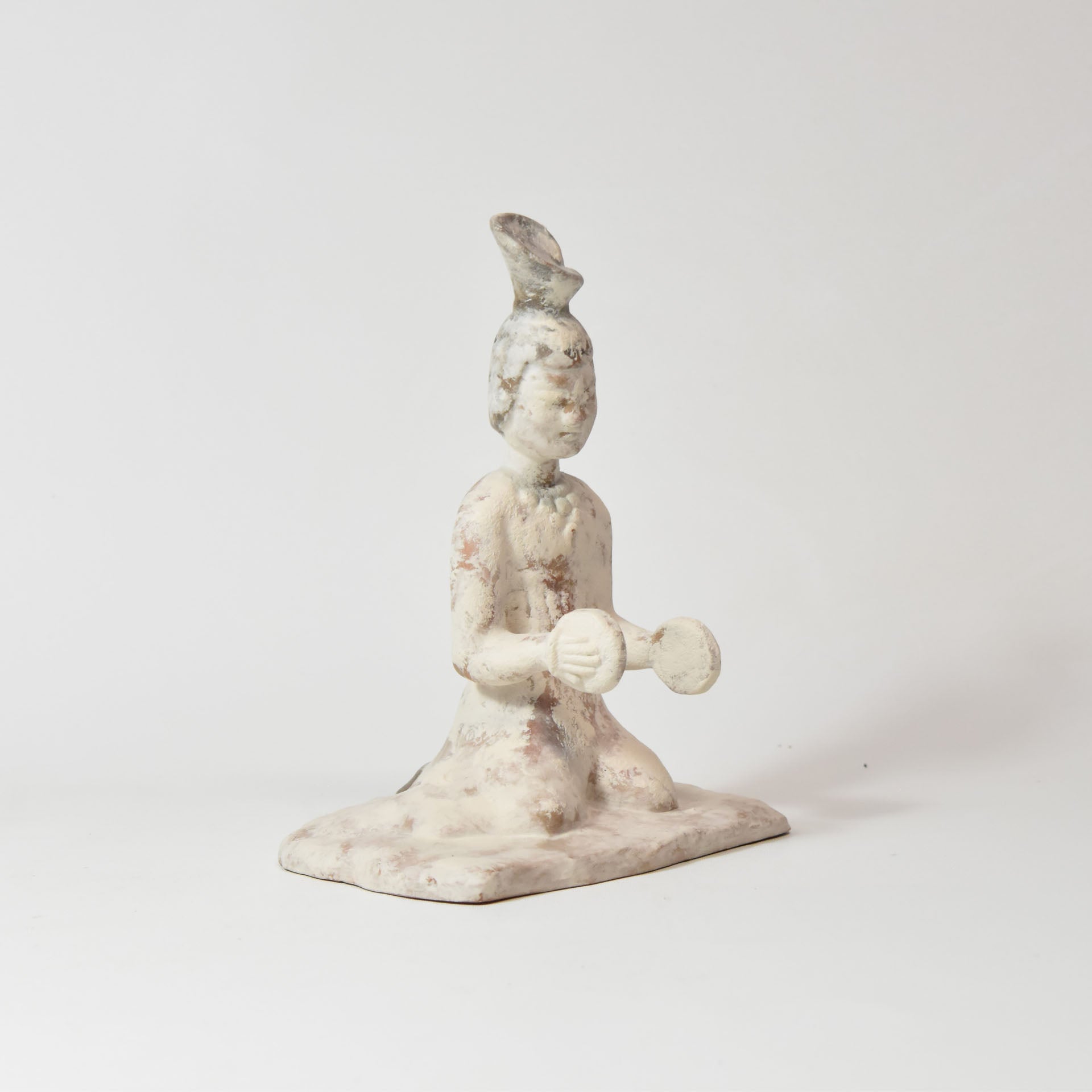 Les statuettes de musiciennes ont été produites en grande quantité très tôt dans l’histoire de la Chine. La tradition voulait que l’empereur et les nobles se fassent inhumer avec un ensemble de statuettes, appelés des « Yong » représentant leur cour, pour pouvoir les servir et les divertir après la mort. Le premier exemple et le plus impressionnant est l’armée de terre cuite de l’empereur « Quin », mais l’apogée de celle-ci se situe à l’époque des Tang.