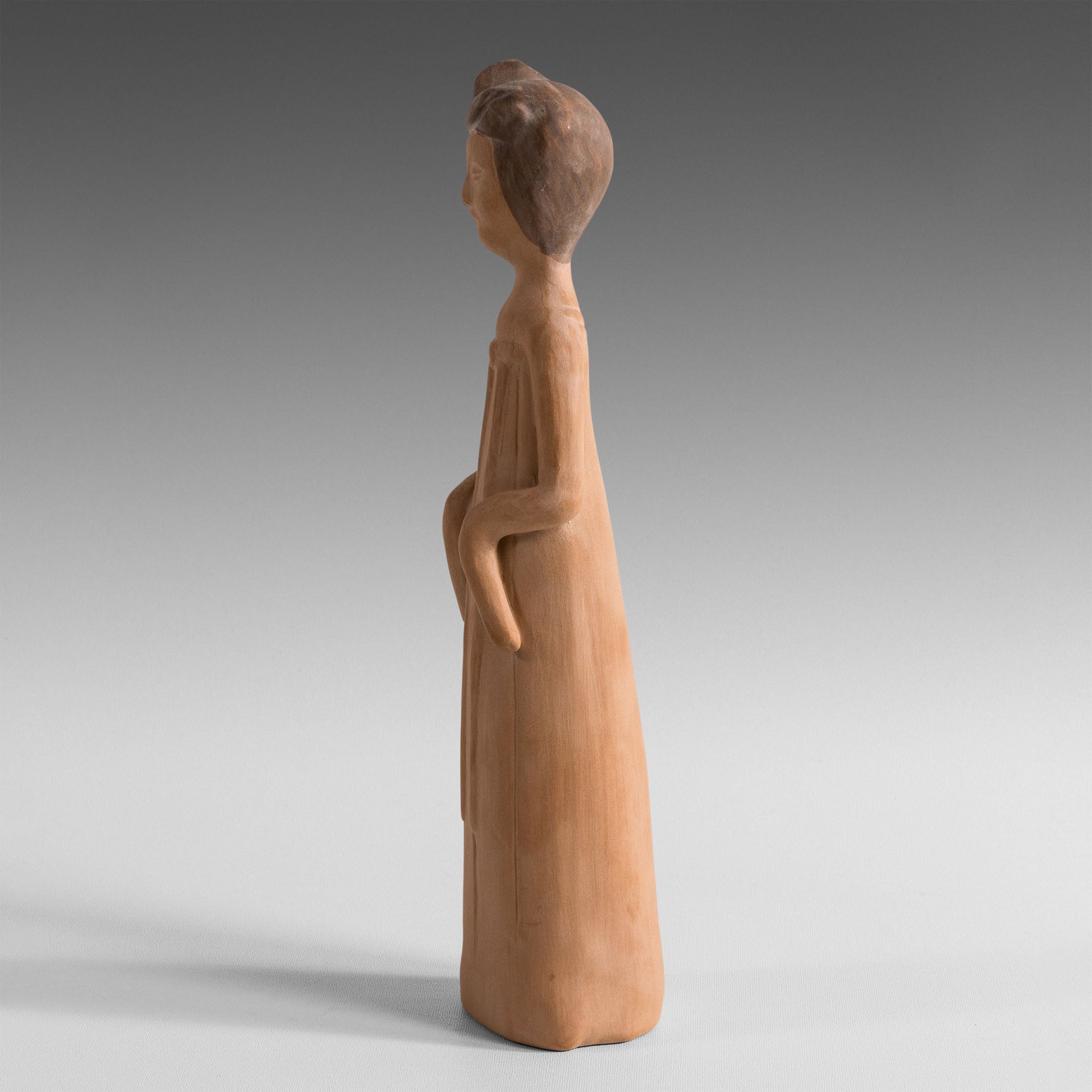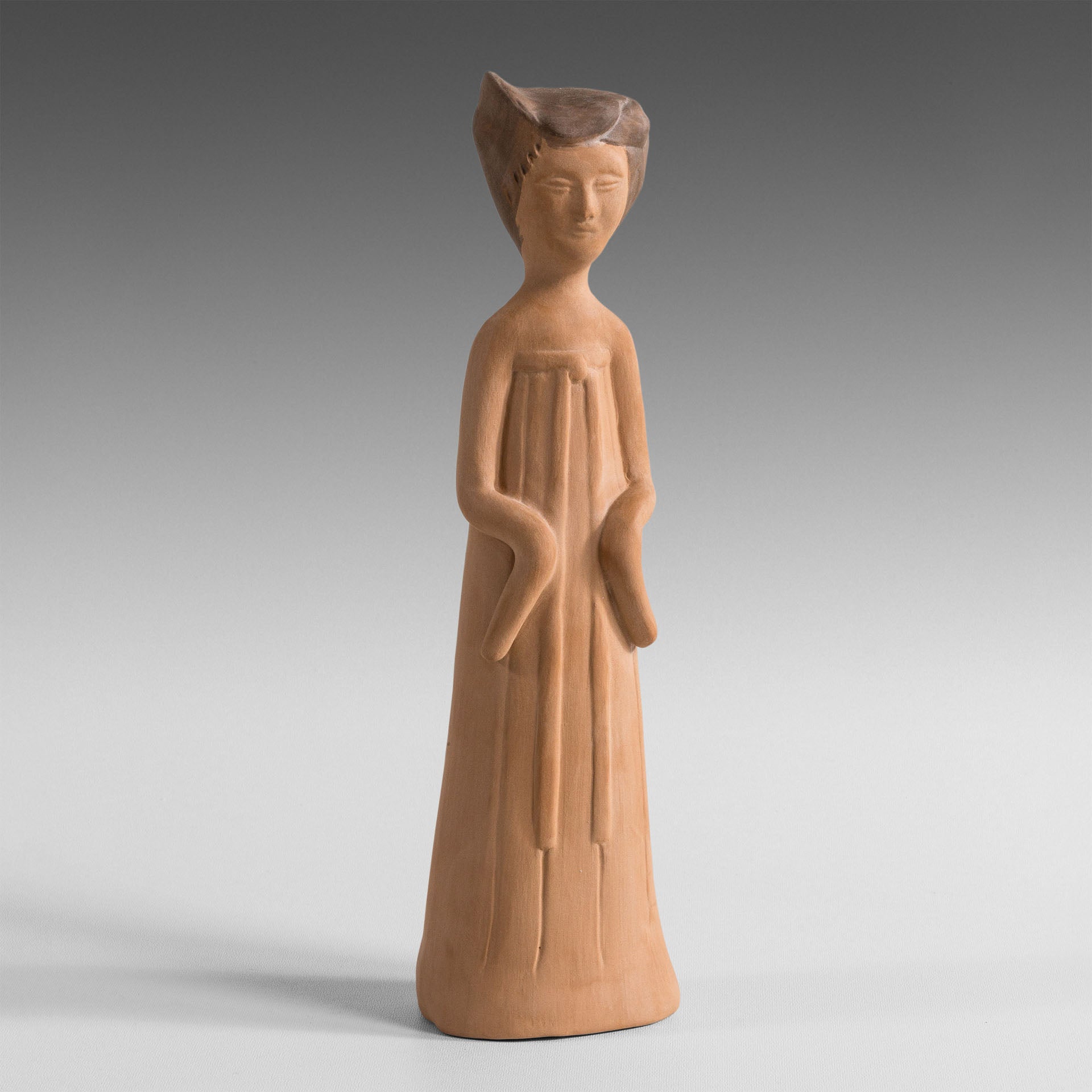 Reproduction en terre cuite d'une Musicienne debout aux manches