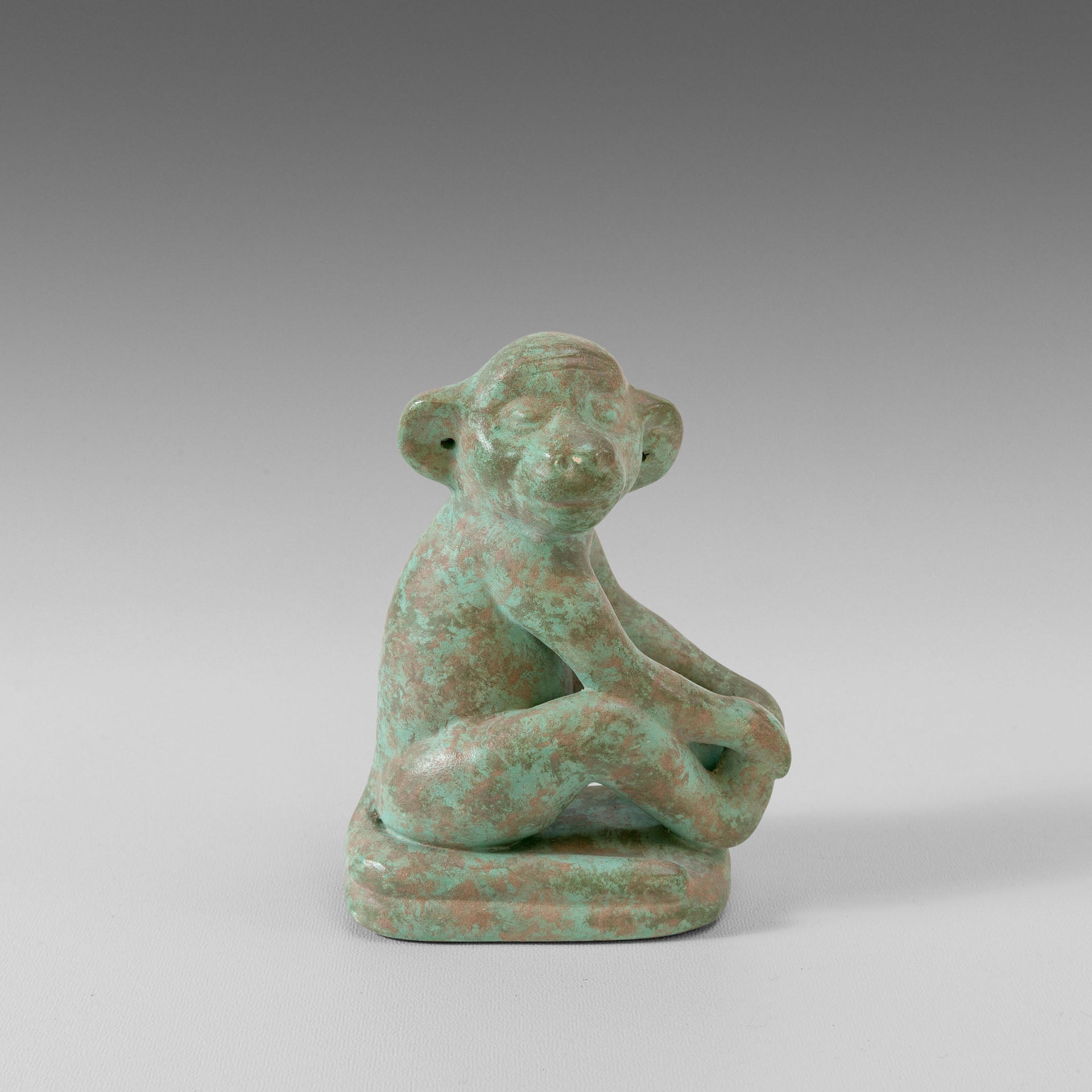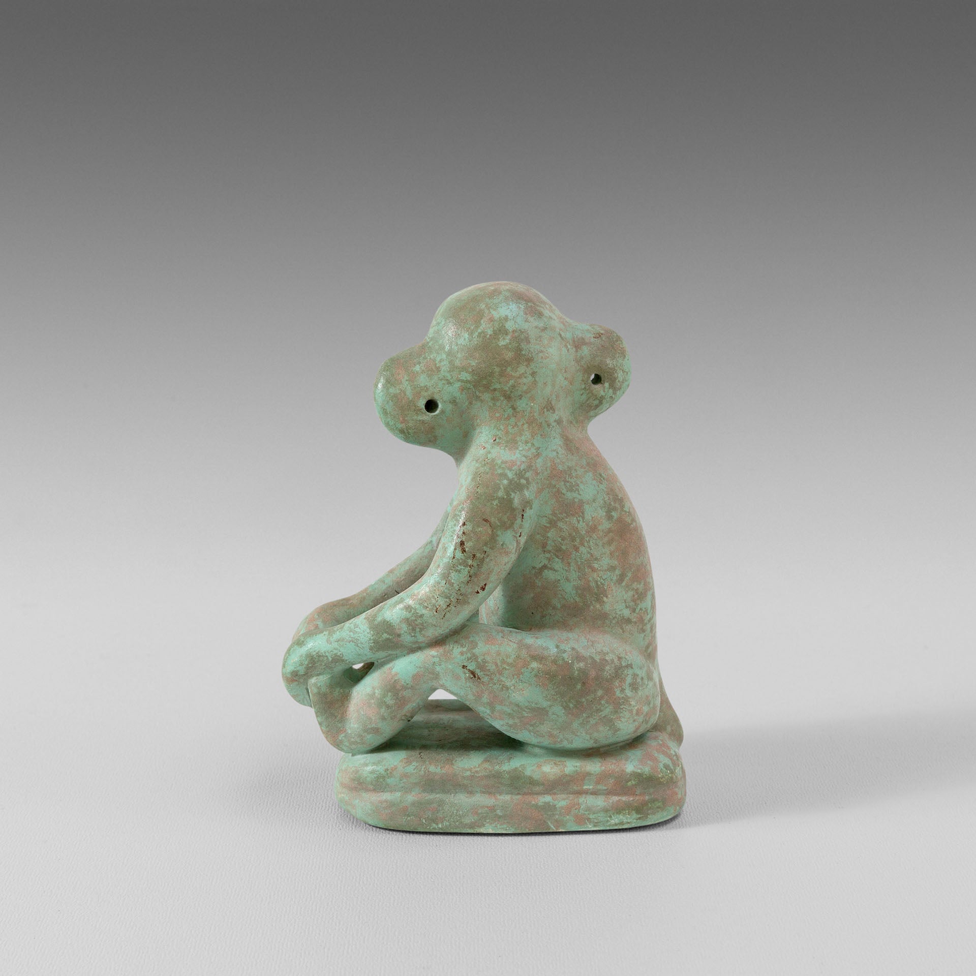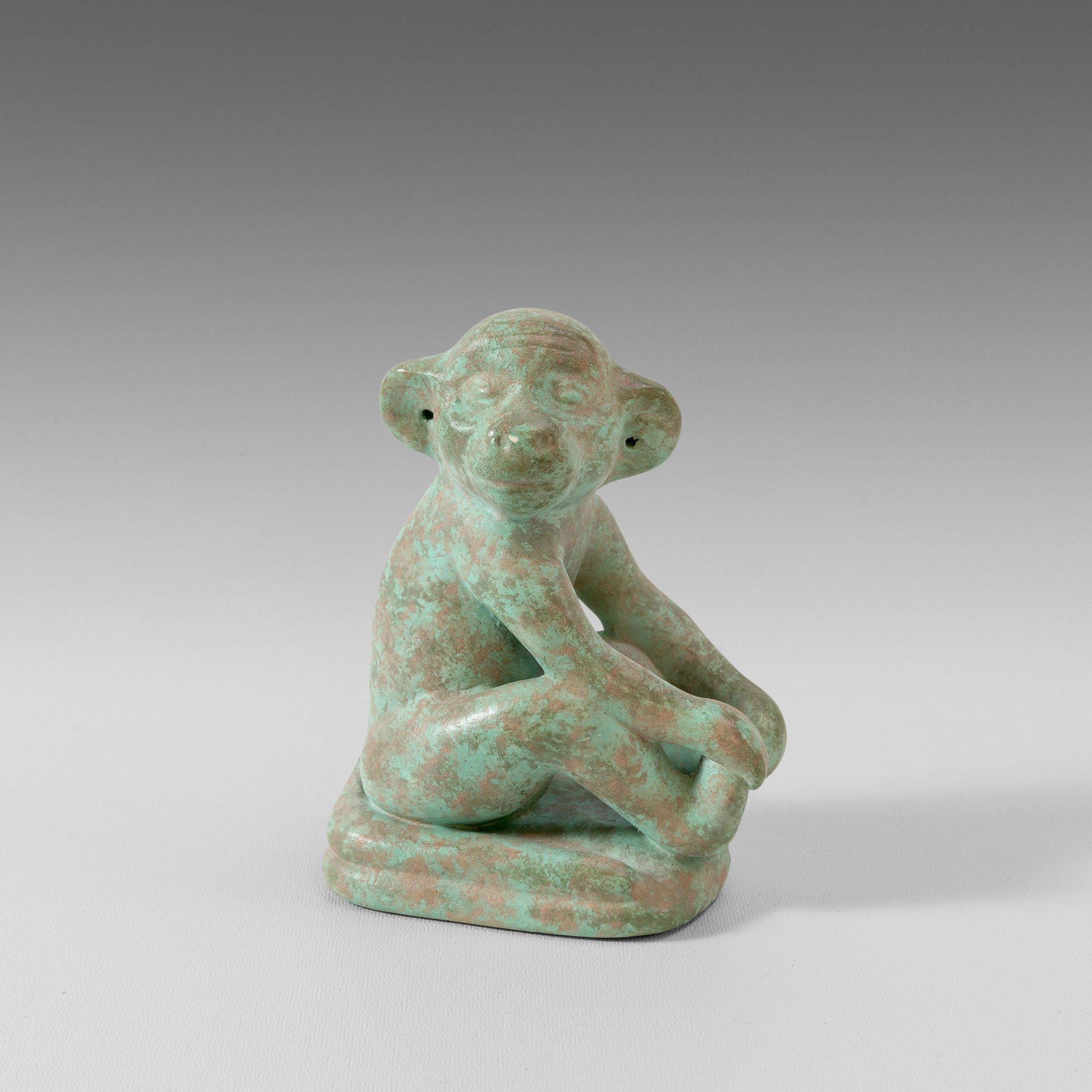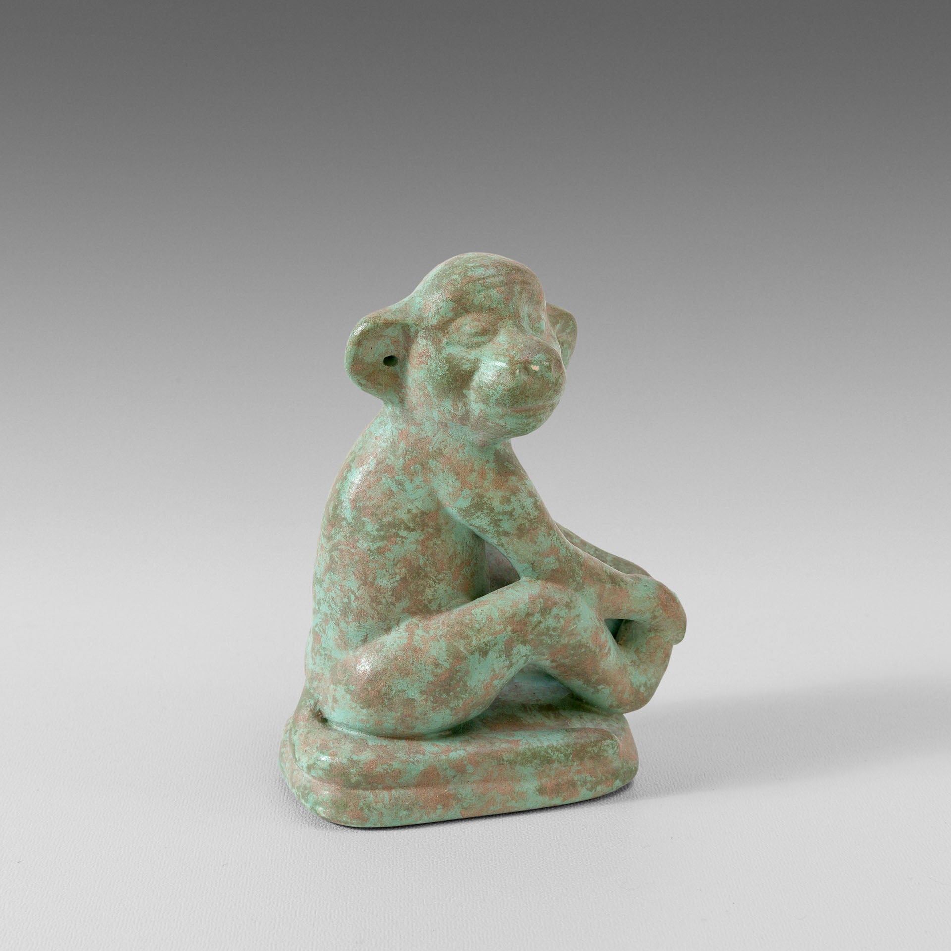 Le singe est un animal très populaire en Égypte. Il est souvent associé à un animal de compagnie et ce depuis longtemps. Pour preuve le singe présenté s’inspire d’une céramique datant du Nouvel Empire, XVIIIème dynastie, période Armana (vers 1352-1336 av. J.C.).