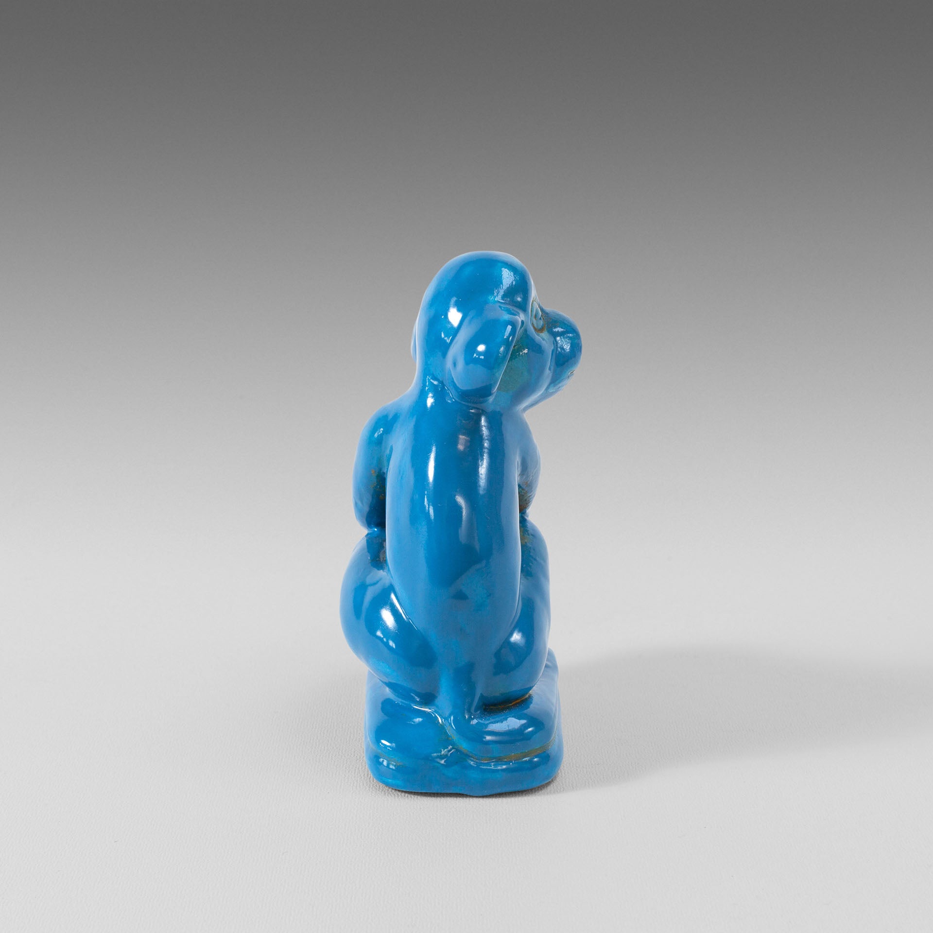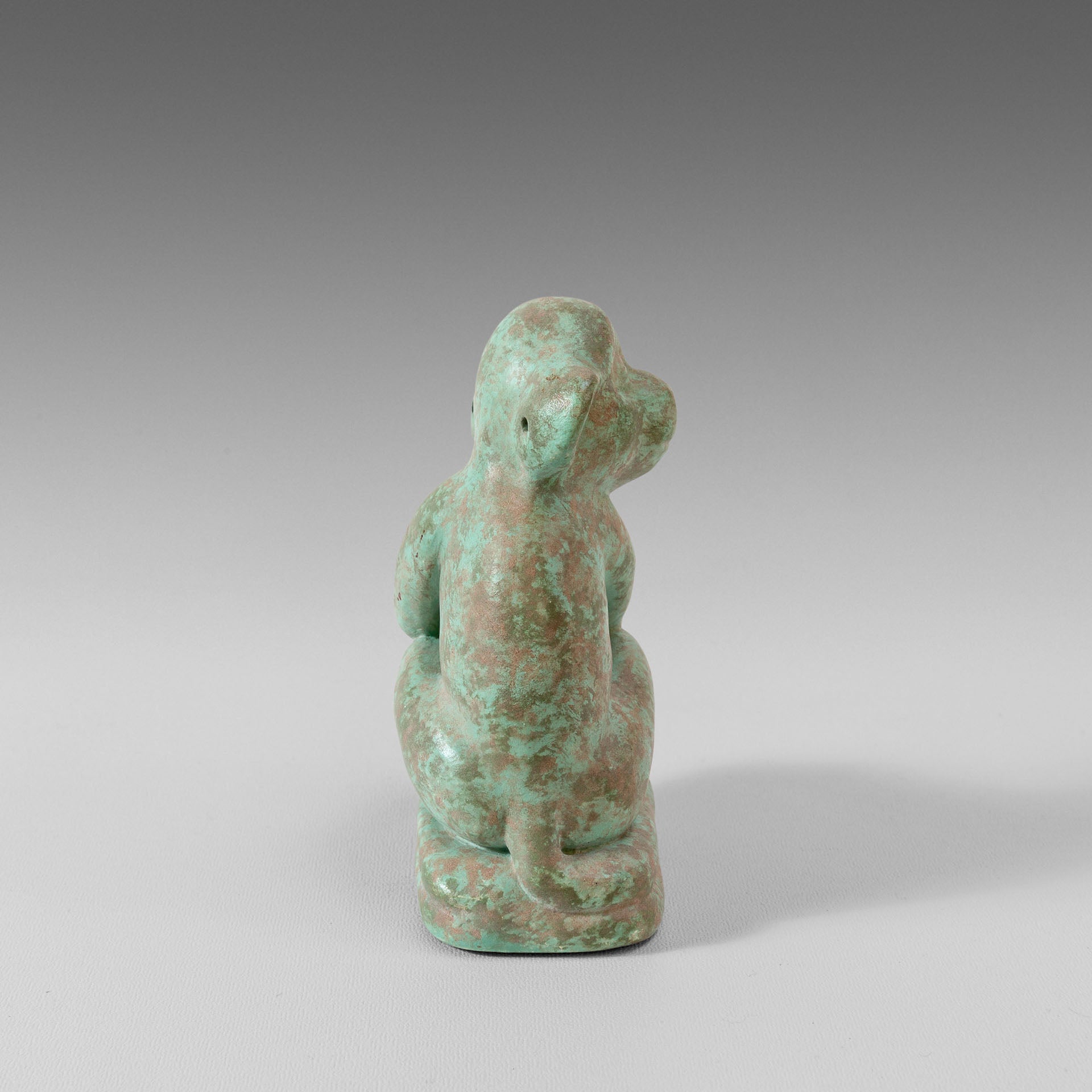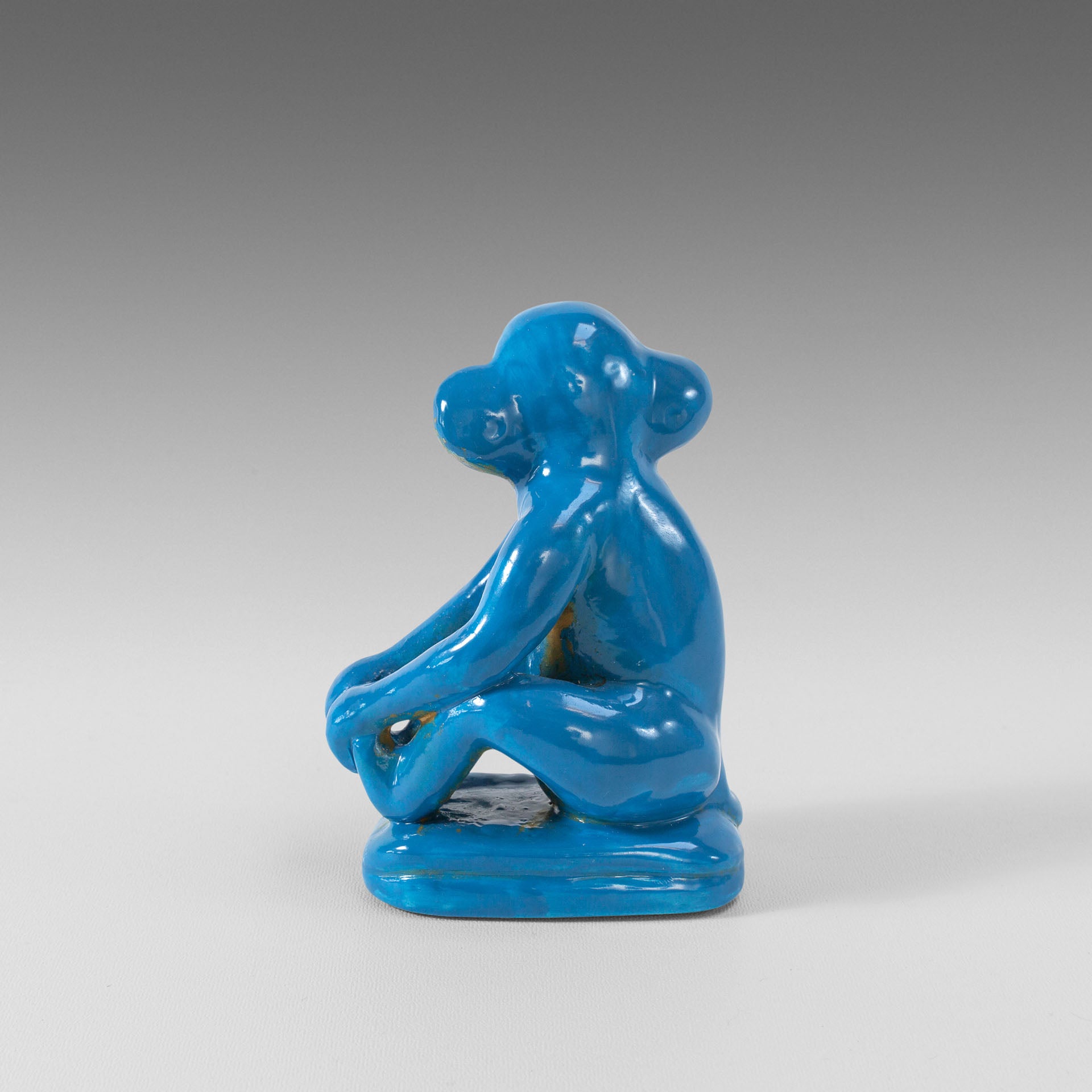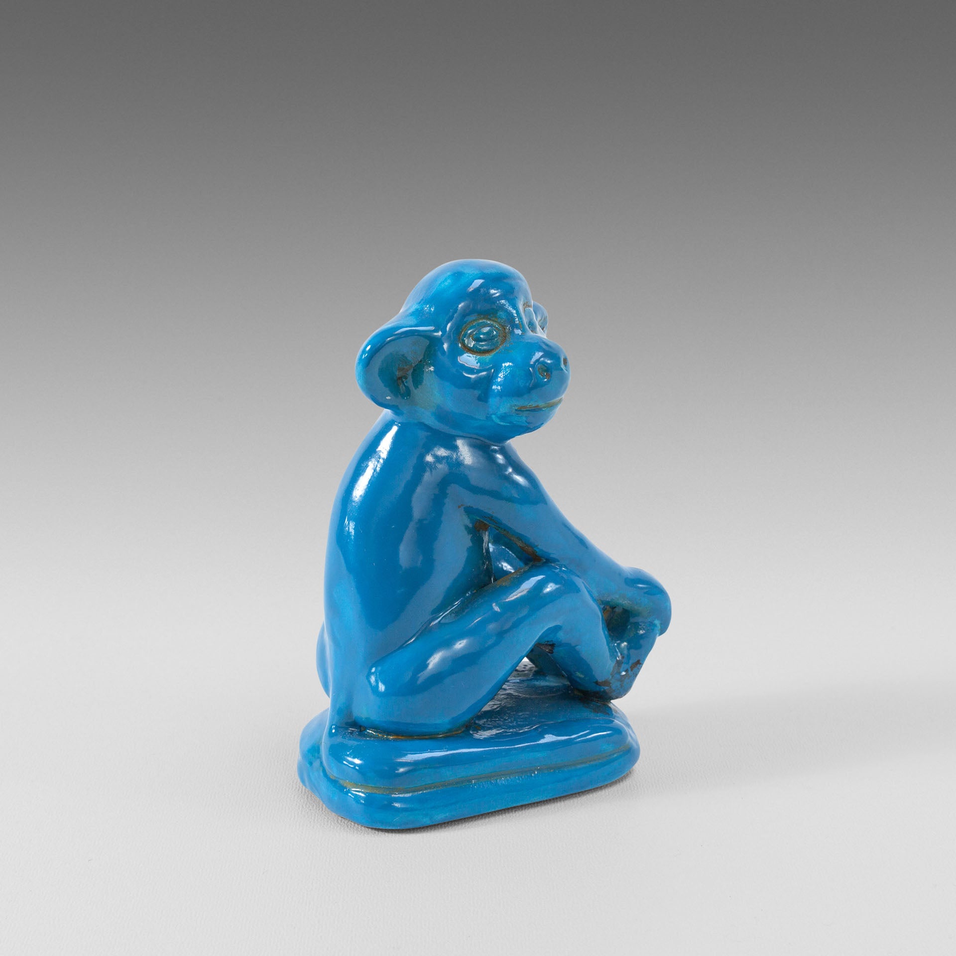 Le singe est un animal très populaire en Égypte. Il est souvent associé à un animal de compagnie et ce depuis longtemps. Pour preuve le singe présenté s’inspire d’une céramique datant du Nouvel Empire, XVIIIème dynastie, période Armana (vers 1352-1336 av. J.C.).