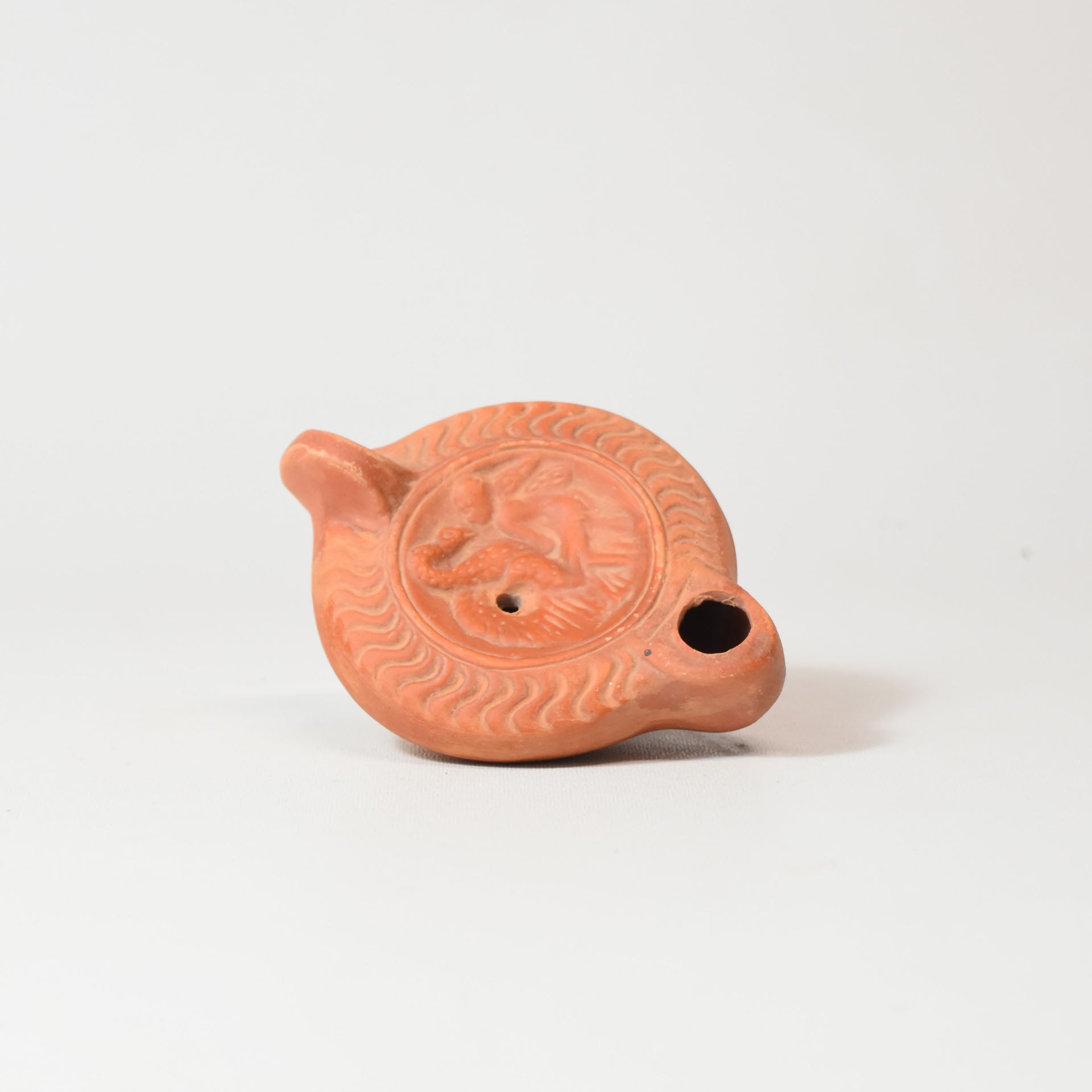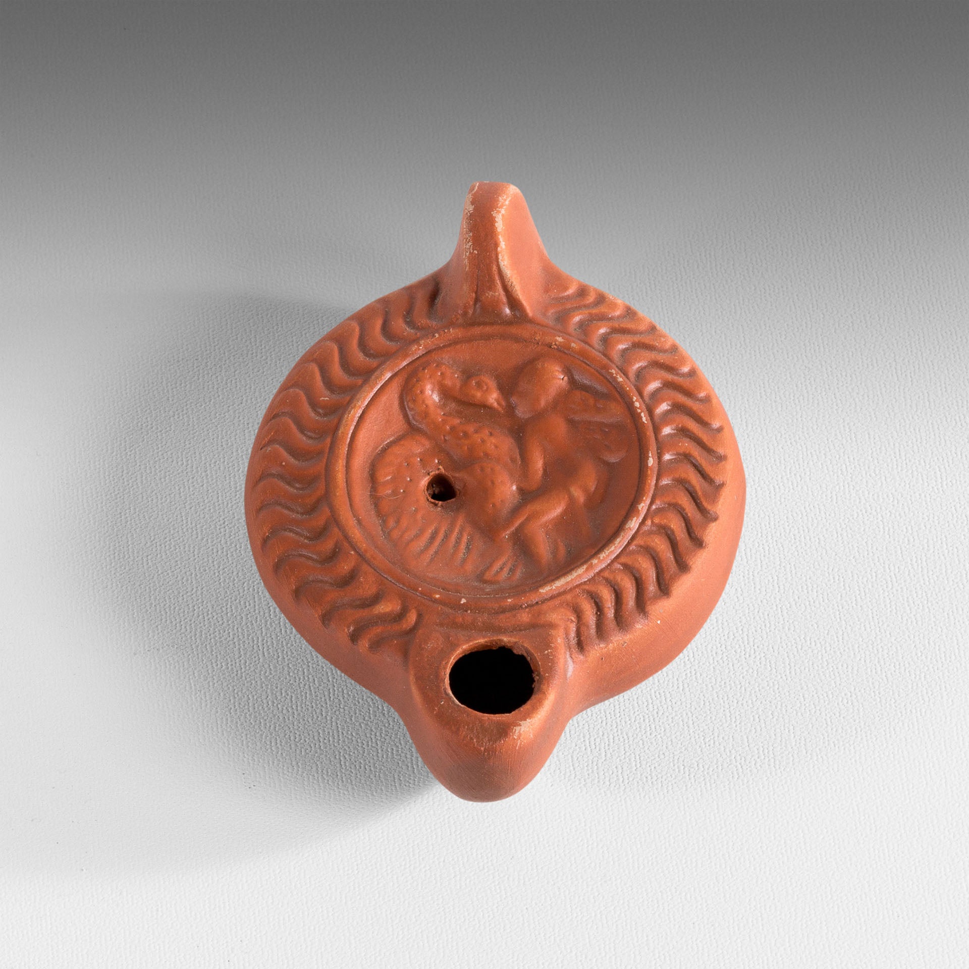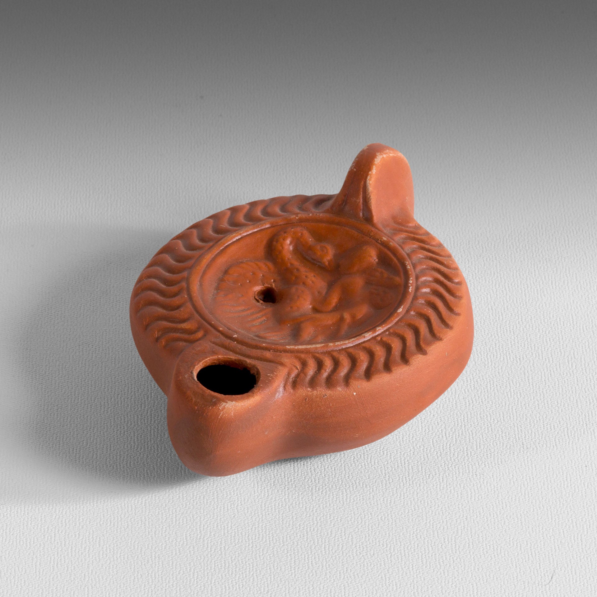 Reproduction en terre cuite d'une Petite Lampe à huile Leda et le cygne